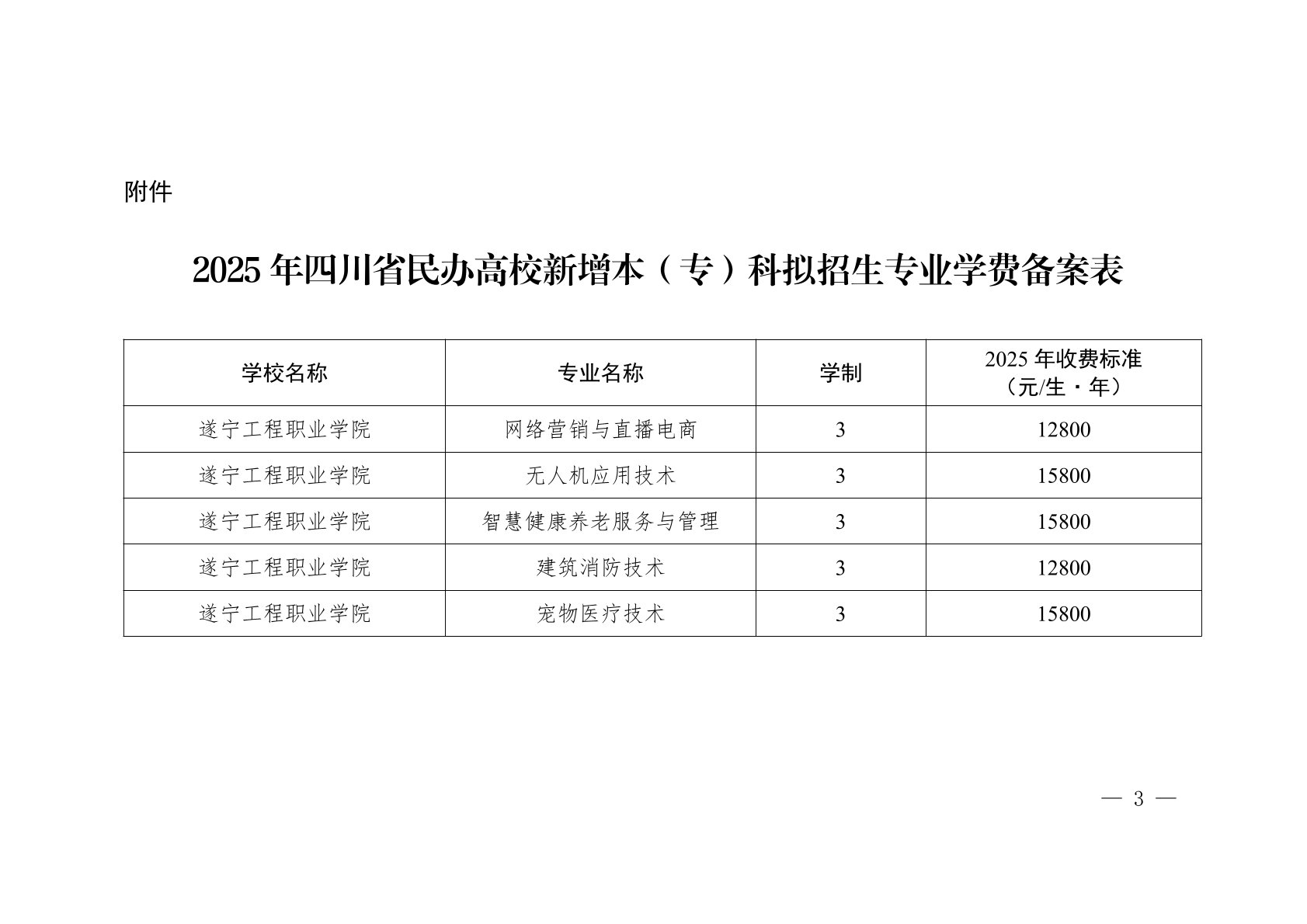 关于民办高校2024年新增本(专)科拟招生专业学费备案的函(遂宁工程职业学院)